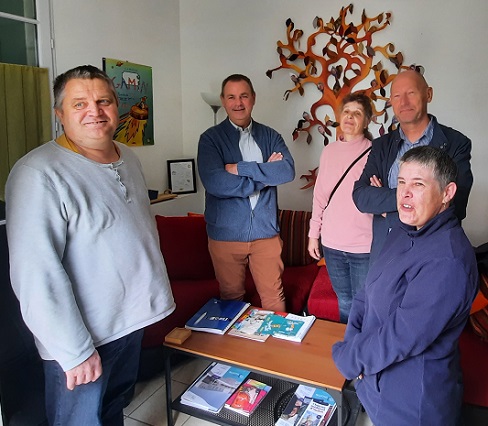 Le 21 mai dernier, le Groupe d’Entraide Mutuelle Le Pacifique, structure de prévention associative accueillant des personnes en souffrance psychique/ et ou isolées, a signé une convention de parrainage avec l’Etablissement Psychiatrique de Loire-Atlantique Nord, dans ses locaux à Ancenis, en présence de Maud Monnier, coordonnatrice du GEM Le Pacifique, de Leila Grandin et Marine Plessis, animatrices du GEM, du Dr Gallardo, cheffe de pôle du pôle Est d’EPSYLAN, Yves Praud, directeur d’EPSYLAN.